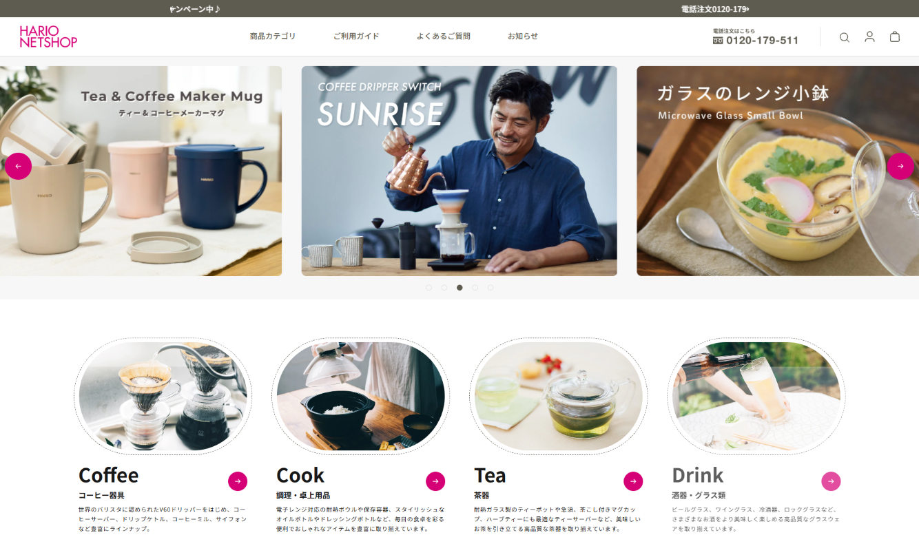 【PR】HARIO NETSHOP 今回は、老舗ガラスメーカーが展開するオンラインストアのご紹介です☕✨コーヒー器具やティー器具、調理器具、ポット、グラスなどの家庭用品から、ペット用品やアウトドア用品まで幅広く揃っているそうです😊💡こんな商品が揃っています💡 ◆コーヒー器具☕毎日コーヒーを飲む方や、コーヒー愛飲家の方に。本格的なコーヒー器具が揃っています。 ◆調理器具🍳主婦の方や一人暮らし、毎日料理をする方に。少し手の込んだ調理を楽しめるアイテムが揃っています。 ◆ペット用品🐶🐱それぞれの犬種にあった食べやすい食器を開発しているそう。飼い主さんのお困り事解決を目指した商品も販売されています。 ◆アウトドア用品⛺キャンプ好きやツーリング、釣り好きの方に。『外で飲むコーヒーを楽しく、美味しく、カッコよく』をテーマに、アウトドアコーヒーの新たな体験を提供できる商品が用意されています。 💡おうち時間を豊かに💡おうちカフェを楽しんだり、少し手の込んだ調理をしたり。 あると室内での生活をちょっと豊かにしてくれる商品が取り揃えられています✨毎日の暮らしに少し楽しみをプラスしたい方は、ぜひチェックしてみてくださいね😊 詳細はこちらをクリック おすすめ商品 Coffee -コーヒー器具- Cook -調理・卓上器具- Tea -茶器- Pet -ペット用品- 真空二重マグコーヒーメーカー ¥3,300(税込み) ひとつで二役のマグ&コーヒーメーカーアウトドアで冷えた体を温めるのに適した保温性の優れたマグ。保温マグとしての使い方はもちろん、コーヒー粉と熱いお湯があればこれ一つで美味しい一杯のコーヒーが淹れられます。コーヒー粉をお湯に浸すことでコーヒー豆の味を余すことなく引き出してくれます。 V60透過ドリッパー02(樹脂製) ¥660(税込み) お湯の速度で「味」が変えられる・ネルドリップの美味しさとペーパードリップの手軽さを両立・珈琲粉の層が深くなる「円すい形」が、しっかり旨みを抽出します。・素早く注げばスッキリ味、ゆっくり注げばコク深い味。 大きなひとつ穴なので、注湯の速度で味が変えられます。・珈琲粉の膨らみを妨げない、スパイラルリブ採用。・1〜4杯用(一杯120ml) フタがガラスのご飯釜 ¥9,900(税込み) 炊ける様子が見える、耐熱ガラス製フタのご飯釜。透明な耐熱ガラスフタなので、ご飯が炊ける様子が見えます。鍋の形状をラウンド型に、肉厚を均一に厚みを持たせることで、火加減調整をしなくても炊きむらなく、ふっくら美味しく炊き上げることが出来ます。ツマミにホイッスルがついているため音で炊きあがりを知ることができます。 茶茶急須・丸 AYAORI 450mL ¥2,200(税込み) ・茶こしは型崩れしにくく、メッシュに茶葉がはさまりにくいので洗いやすい!・目の細かい綾織り茶こしが細かな茶葉までしっかりキャッチ。 微粉が出にくく、澄んだお茶の色と味わいが楽しめます。・茶こしが底まで届くから、少量でもしっかりお茶を抽出できます。・すべてのパーツが食器洗い乾燥機対応。お手入れ簡単で衛生的です。 香りマグカップ ¥1,100(税込み) 香りをより愉しむためのマグカップです。丸みをつけたデザインは、カップの中の空気の対流を促し、カップから出る香りを口元に集めるので、飲み物の香りをより楽しめます。耐熱ガラス製だから、アイスドリンクにもホットドリンクにも使えます。熱湯洗浄はもちろん、食器洗い乾燥機の使用も可能です。 にゃんプレトール ¥1,870(税込み) フードが食べやすい工夫がたくさん!フードボウルとして使いたい方におすすめ。猫の顔型の凹み付きデザインで、フードが集まりやすく最後まで残さず食べられます。内向きのカーブ設計だから、ご飯もお水もこぼれにくいのが嬉しいポイント。熱湯や電子レンジにも対応しているので、フードのふやかしや温めに便利です。 猫草栽培キット にゃんベジセット ¥3,300(税込み) 猫にとって大切な猫草を気軽に自宅で栽培できるキット「にゃんベジ」。容器は有田焼を採用し重みを持たせ、倒れにくい形状にしました。リフィルは使用後に可燃ごみとして処理できます。 ↓↓↓ご購入はこちらから↓↓↓ 商材名 HARIO NETSHOP運営者 A.N※当サイトはアフィリエイトプログラムを利用し宣伝目的で作成しております。