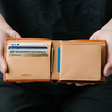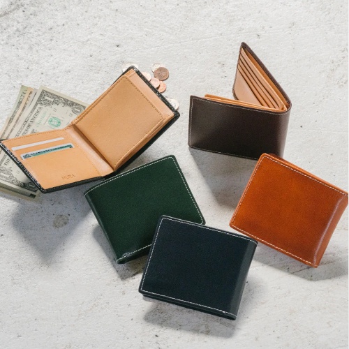 使うほどに手に馴染み、エイジングを楽しめる上質な素材となっています。機能性と素材の品質を兼ね備えた二つ折り財布です。