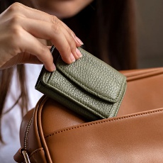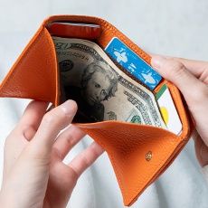 イタリア製の柔らかく上品なシュリンクレザーを使用した三つ折りミニ財布です。