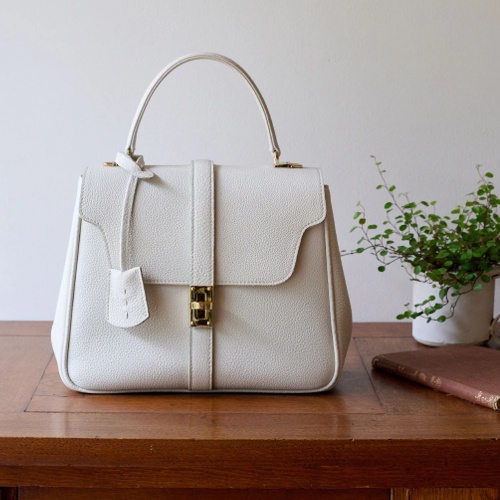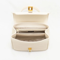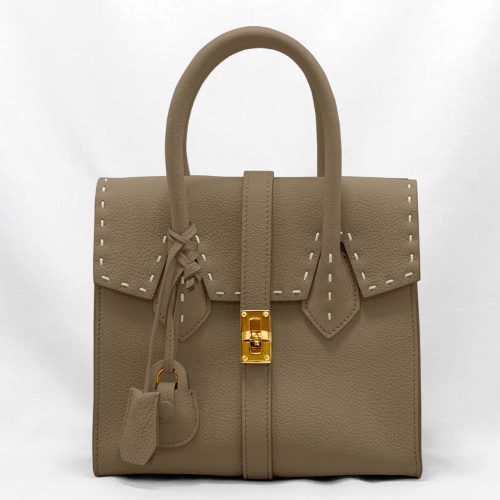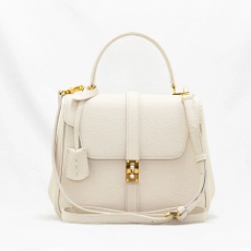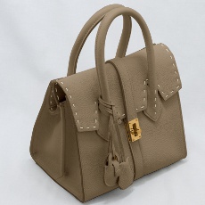 落ち着いた色合いのベージュ系カラーが特徴の本革ハンドバッグです。